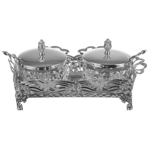 Tava Practică și Decorativă: Setul vine însoțit de o tava asortată, care nu doar completează estetic zaharnițele, ci și adaugă un element practic. Tava nu doar protejează suprafața mesei de eventuale picături de zahăr, ci și oferă un mod simplu și elegant de a le servi.